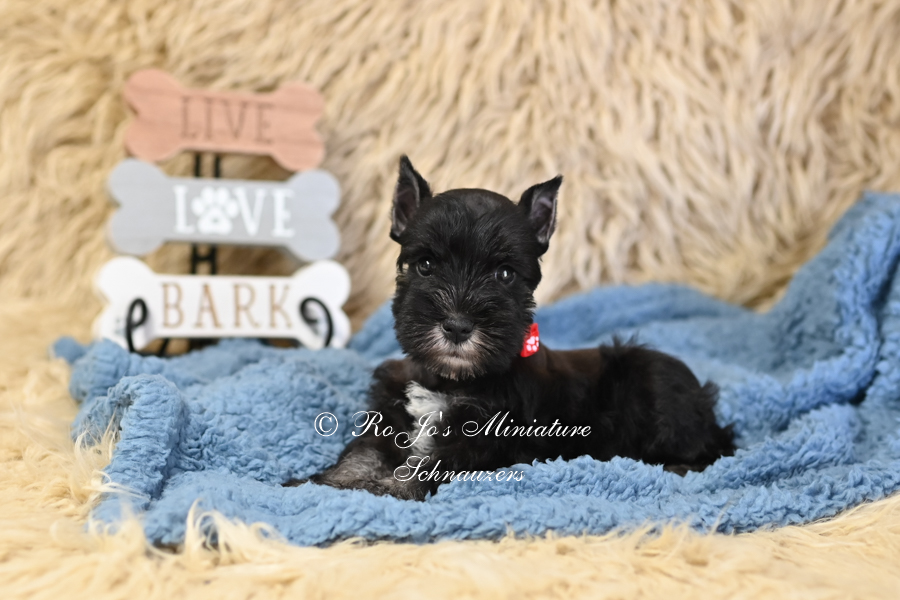 AKC Black & Silver Schnauzer | Shadow Color: Black & Silver Gender: Male Date of Birth: 8/2/2025 Sire: Rowdy Boy Dam: Brooklyn Price: $2000