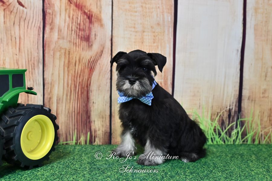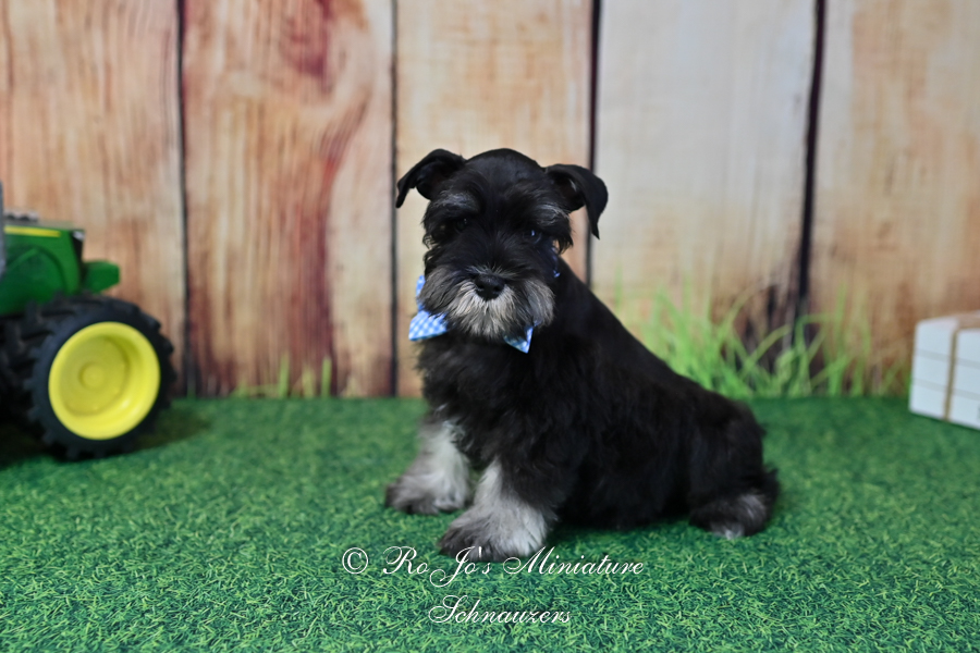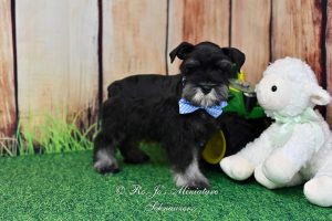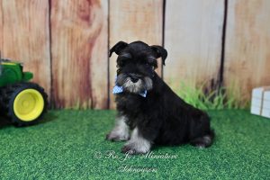 Meet Handsome Lil Reginald !  Reginald is and AKC miniature schnauzer black & silver puppy looking for his new family to love. Contact us today for more information.