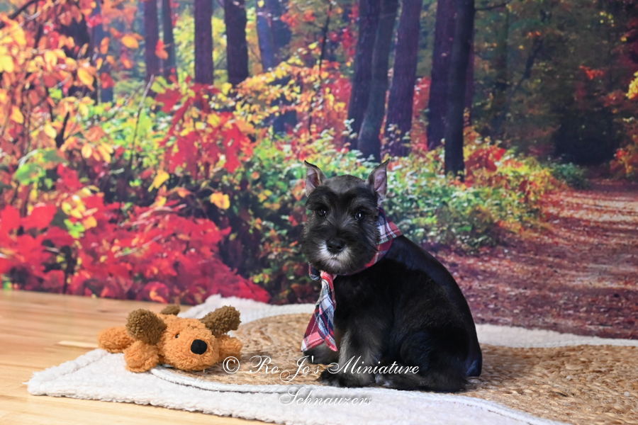 AKC Salt & Pepper | Dallas Color: Dark Salt & Pepper Gender: Male Date of Birth: 08/17/2025 Sire: Bodacious Smokey Dam: Summer Dreams Price: $2000