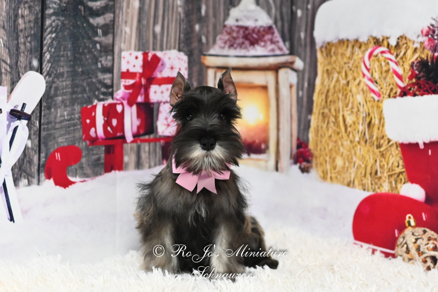 AKC Salt & Pepper | Hannah Color: Salt & Pepper Gender: Female Date of Birth: 08/17/2025 Sire: Bodacious Smokey Dam: Summer Dreams Price: $2000
