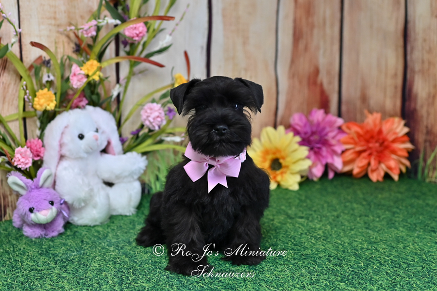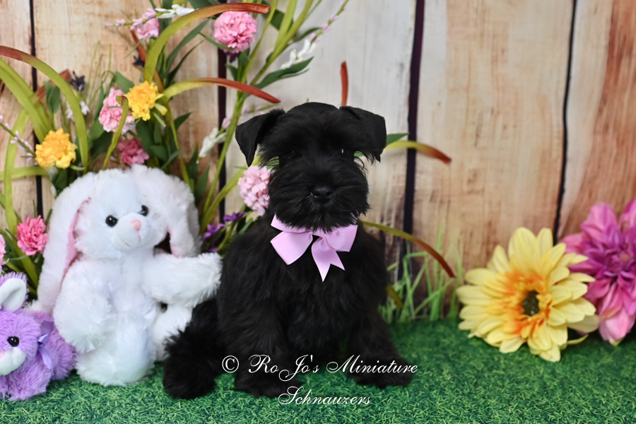 Reserved | AKC Black Mini Schnauzer | Ebony Color: Black Gender: Female Date of Birth: 12/31/2025 Sire: Dashing Rhett Dam: Raven Beauty Price: $2000 Reserved for Adam…Thank you!