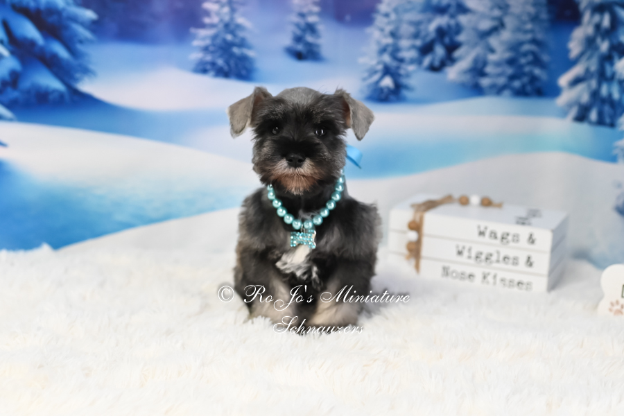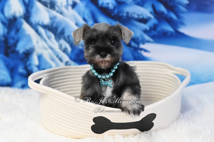 Are you ready to add a bundle of joy to your life? Meet Lil Miss Molly! She is an adorable salt & pepper miniature schnauzer puppy! With her sweet and playful personality, Molly is truly a delight! She will bring endless smiles and adventures to your home. Don’t miss out on the paw-some addition to your family!