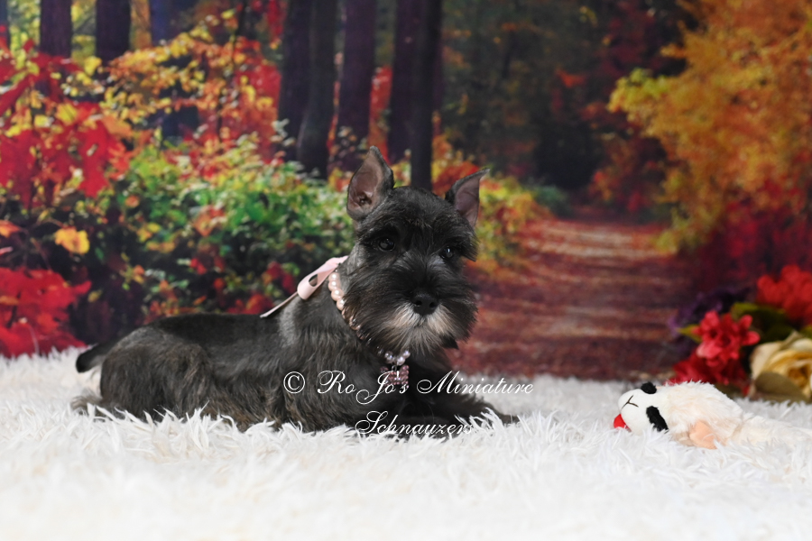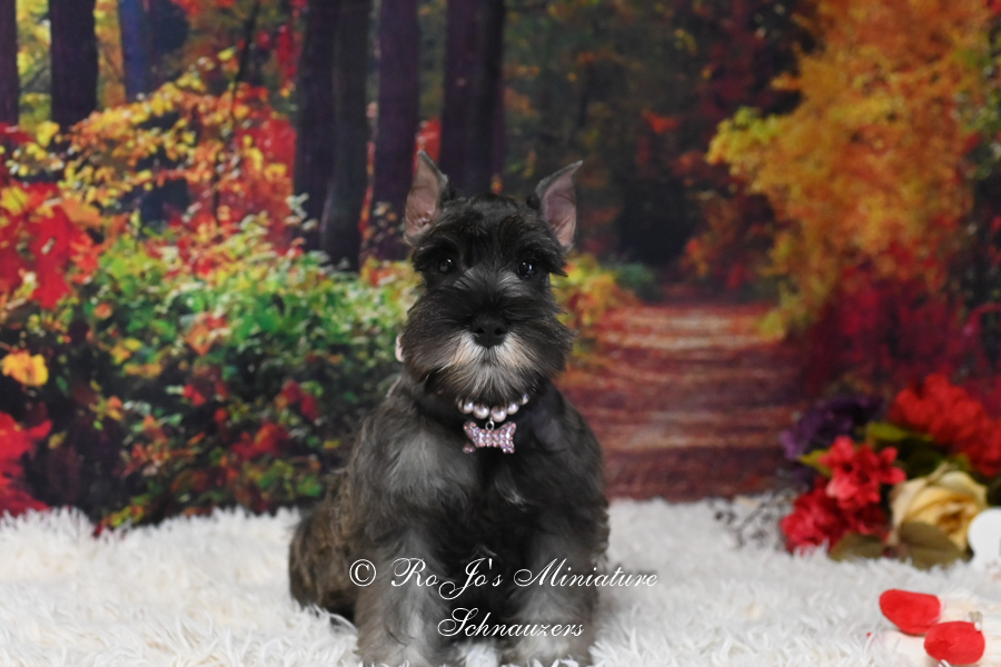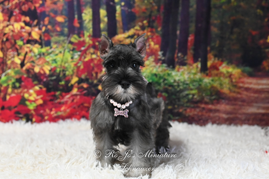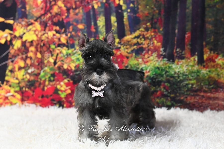 Are you ready to bring home a bundle of joy? This gorgeous salt & pepper miniature schnauzer girl is waiting to bring you lots of love and joy! She’s the perfect addition to any family. Don’t miss out on this little lady! Contact us today!