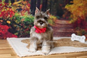 Here at RoJo’s Miniature Schnauzers we offer puppies in the traditional standard colors of salt & pepper, black & silver, and black. In addition to the traditional standard colors, we also offer a variety of nontraditional colors. For more information regarding the variety of nontraditional colors please take a look at the detailed information on Schnauzer Colors.