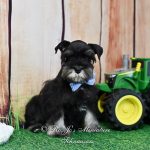 Reserved for Terreca…Thank you! Meet Handsome Lil Reginald ! Reginald is and AKC miniature schnauzer black & silver puppy looking for his new family to love. Contact us today for more information.